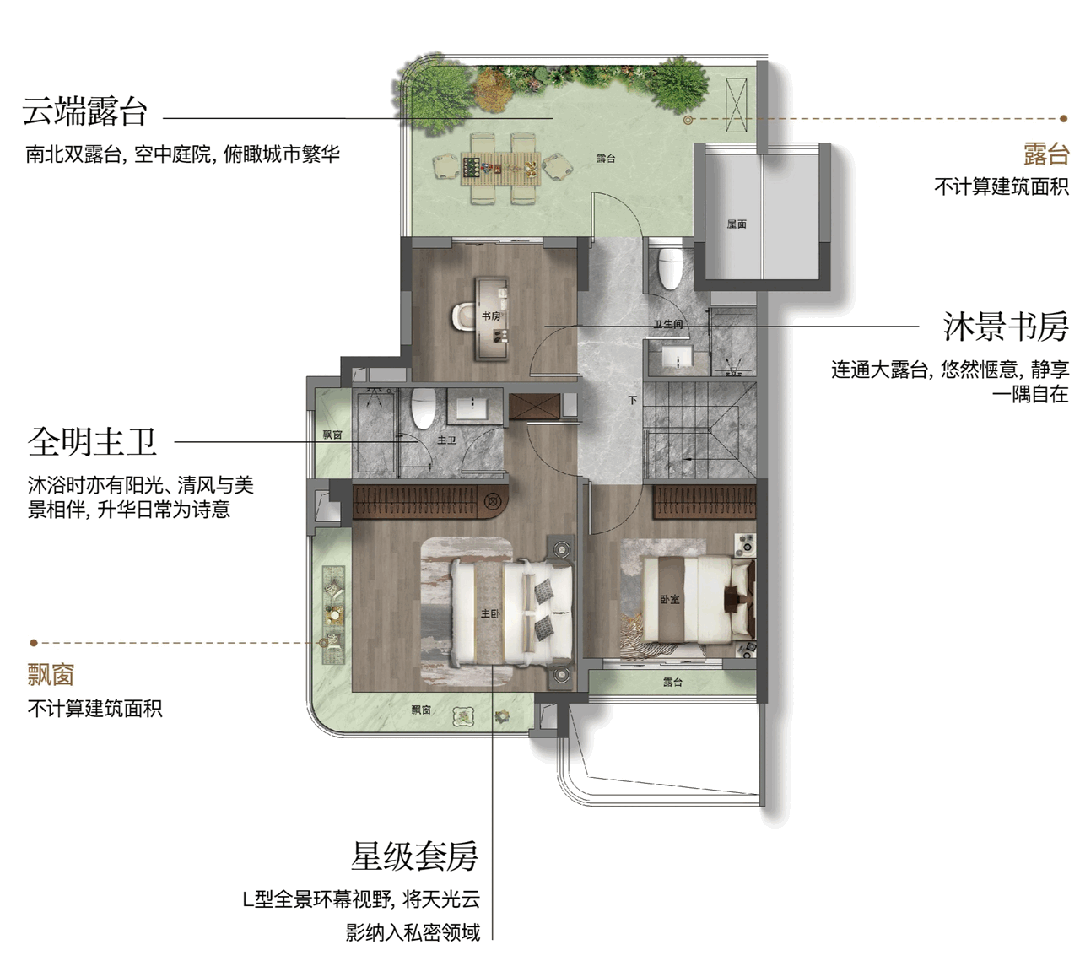 上车后,做为卧室、书房或儿童勾当室利用。可做为瑜伽、阅读或其他休闲空间。包含建面约65-126㎡高层、约144-182㎡叠墅!